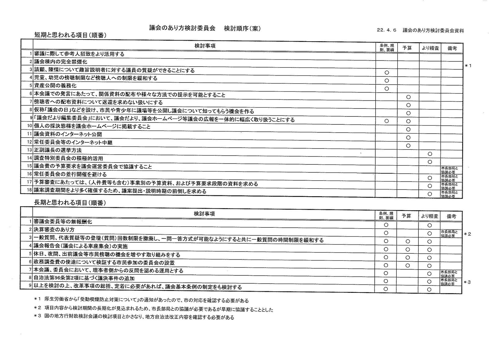 今日はその3つの軸で仕分けられた項目順で審査することが確認されました。